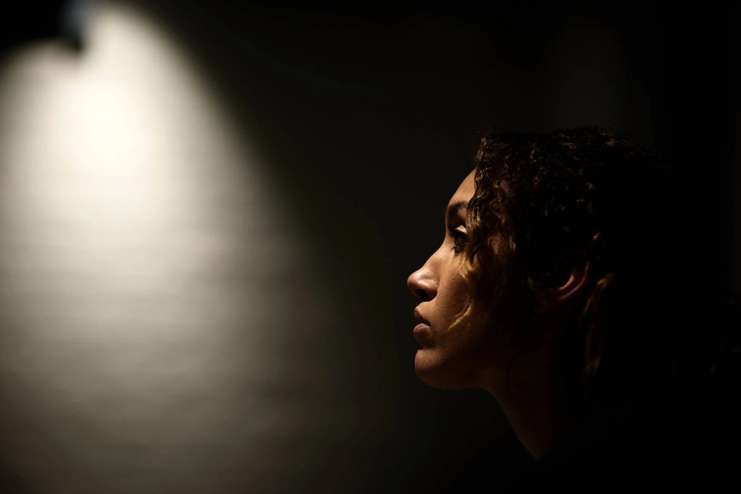 Dramatic portrait of an actor Keturah Chambers in rehearsal in London